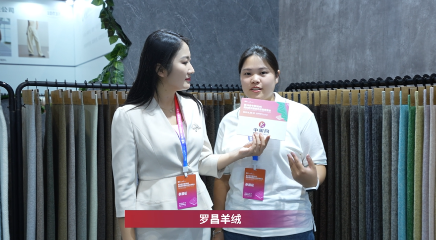 我們主營雙面呢面料,現(xiàn)場也帶來了一些樣衣。大家可以根據(jù)我們的樣衣,來感受面料的效果。這次參展的新品,我們的雪花產(chǎn)品,有肌理感,我們今年也增加了一些新的顏色,去年只有灰色、咖色、深灰色等。新款的設(shè)計理念區(qū)別于市場的常規(guī)款,給人眼前一亮的感覺。目前面對的客群,杭州有一部分客戶,我們也可以接待電商、批發(fā)、品牌等。